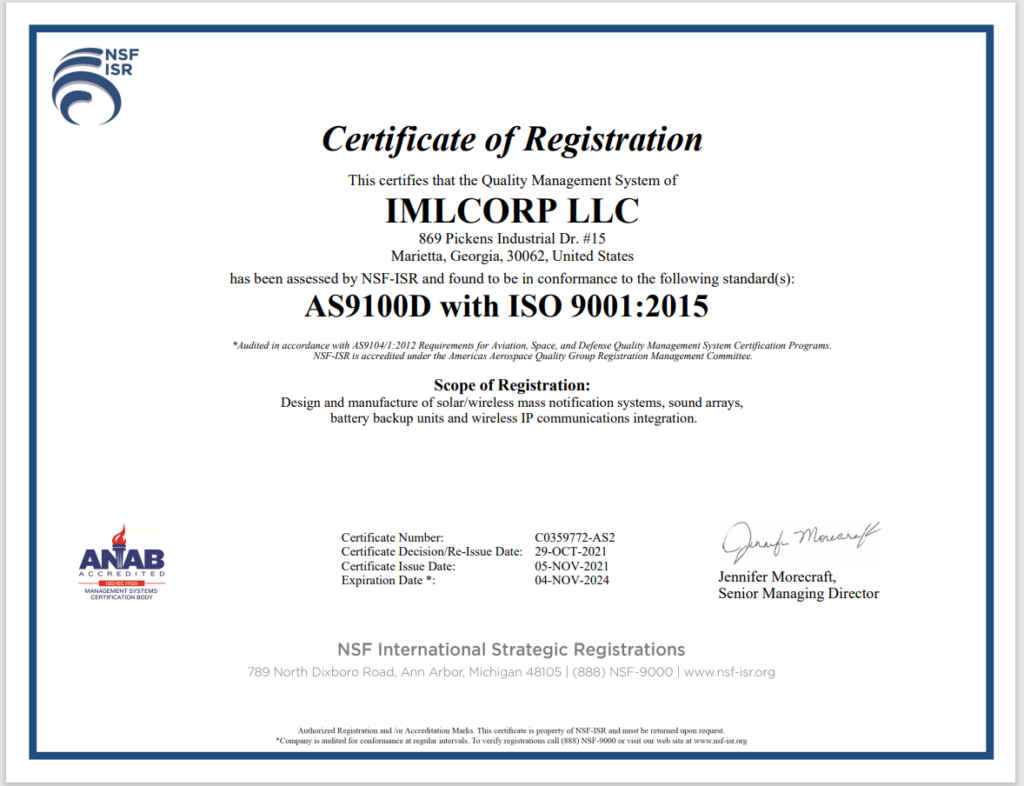 ► AS 9100D with ISO 9001:2015 | Certified by NSF International Strategic Registrations